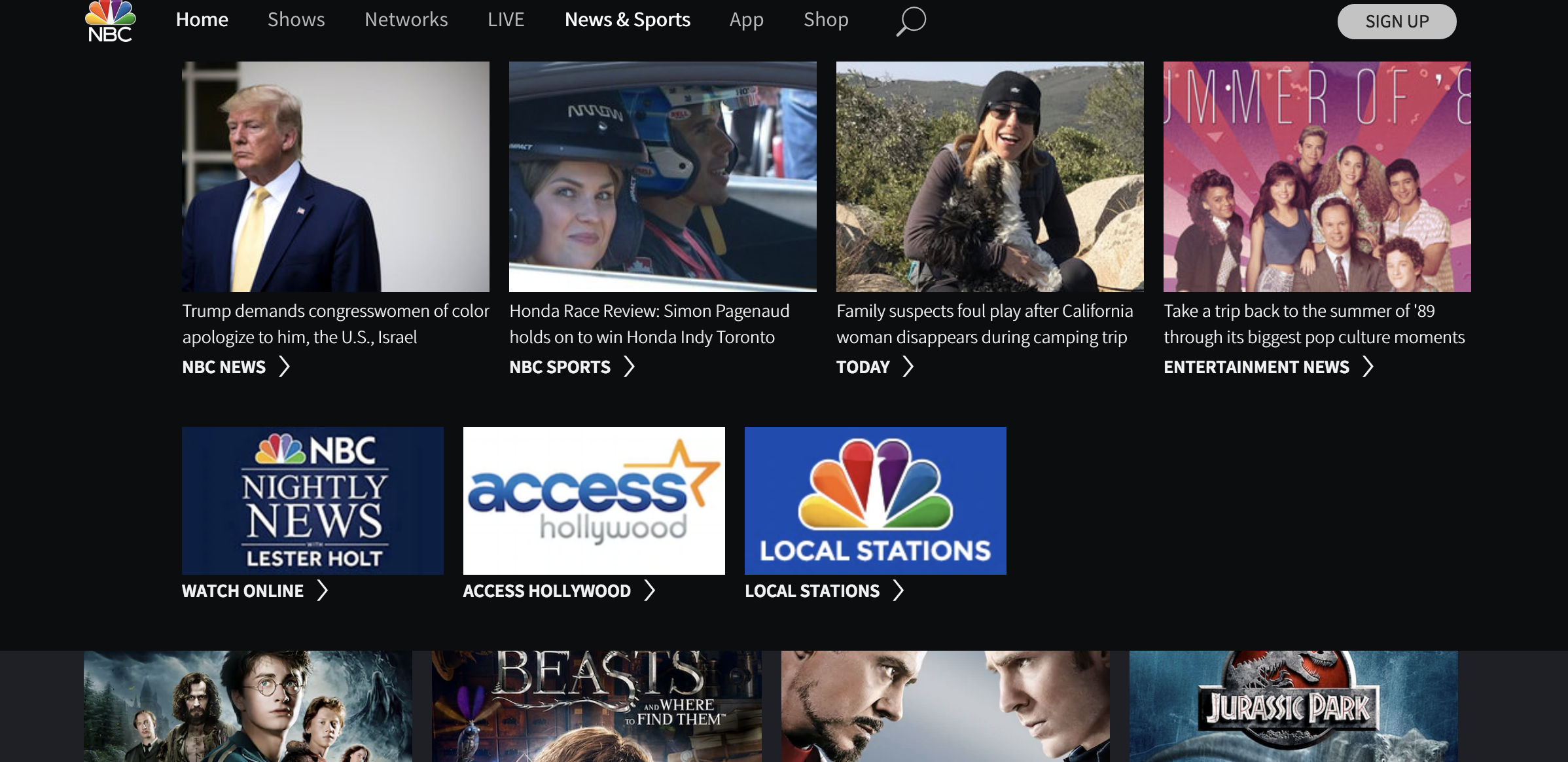 - Gives local news stations for different locations in the U.S.